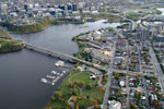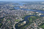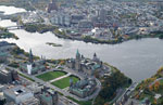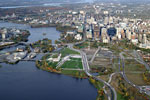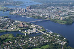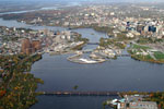 I have flown twice last fall, less than a month apart. Look at the foliage and you can easily guess which photos were taken in the middle of September and which ones were taken at the beginning of October. I am already planning a repeat trip next spring over Ottawa. I also hope to fly over Toronto, Kingston and Quebec City. I just can't wait! If you are not familiar with the geography of Ottawa, you will recognize in the first photo the Parliament buildings of Canada. You can also see the Ottawa River just behind Parliament. On the other side of the river, is the city of Gatineau in the province of Quebec. Gatineau is predominantly French speaking while the people of Ottawa are mostly English speaking. |